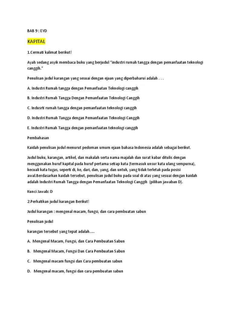 Penulisan Judul Karangan Berikut Ini Yang Benar Sesuai Dengan Eyd Adalah - Kaidah Dalam Ejaan Yang Disempurnakan Eyd Porosilmu Com - Kata jalan ditulis lengkap jalan bukan jl.. Nah berikut ini contoh cara menulis daftar pustaka dari sumber buku jurnal dan skripsi. Untuk menghasilkan judul yang menarik, maka bisa menggunakan beberapa tips berikut ini. Mari simak lagi pembahasannya berikut ini. Informatif, dan komunikatif bacalah kutipan teks berikut ini! Kami biasanya di padang panjang dan khususnya di pemerintahan sering menggunakan kata padang panjang secara terpisah sedangkan secara eyd kata tersebut diserangkaikan jadi mohon dikirimkan tentang pp eyd atau yang berkenaan dengan hal di maksud sebagai bukti otentik buat kami terima kasih